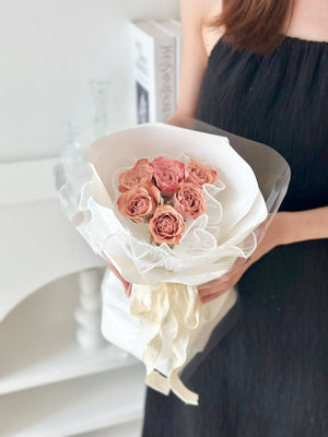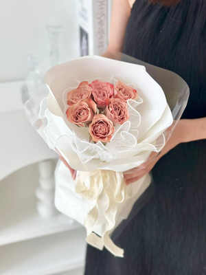 Place your flower bouquet in a cool room or shaded area. Please avoid placing your bouquet in a fridge / exposing your bouquet to direct extreme heat, ripening fruits, and direct sunlight.