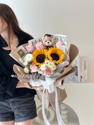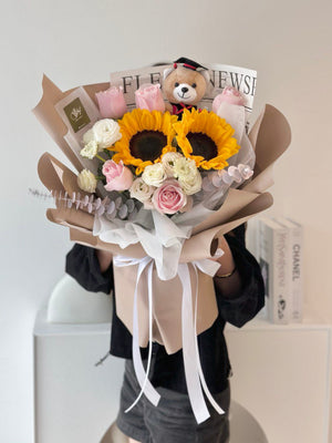 Place your flower bouquet in a cool room or shaded area. Please avoid placing your bouquet in a fridge / exposing your bouquet to direct extreme heat, ripening fruits, and direct sunlight.