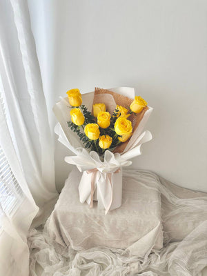 9-10 stems Yellow Imported Rose, Eucalyptus